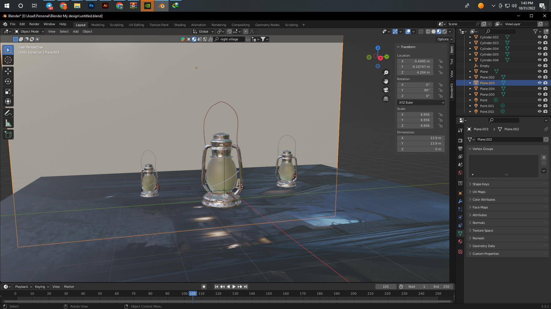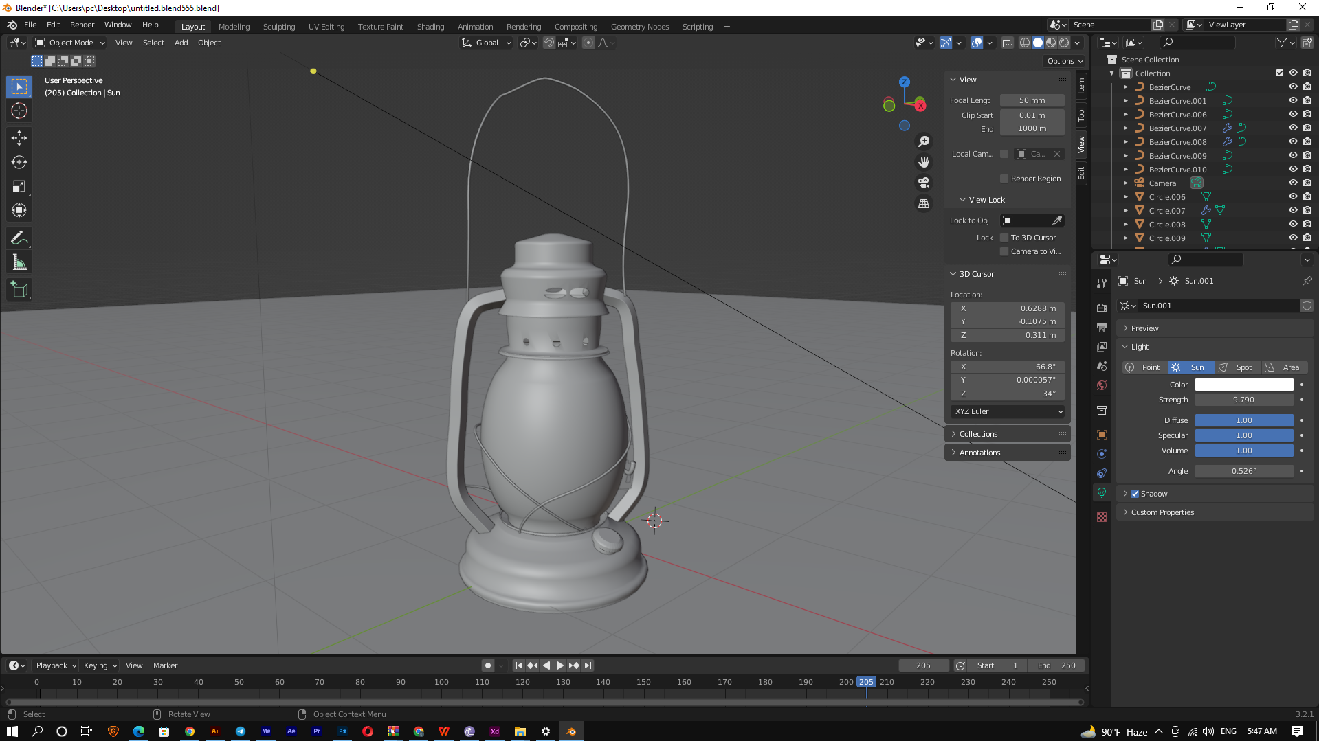 Kerosene lamp 3D Model Blender 2.79